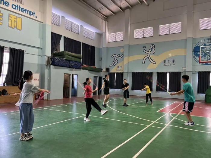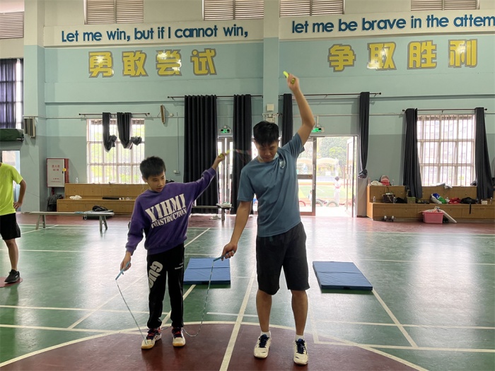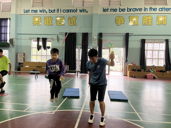 一根根跳繩,連接的是希望與夢(mèng)想,傳遞的是勇氣與力量,演繹的是奮進(jìn)與拼搏。本次比賽集訓(xùn)時(shí)間短,訓(xùn)練任務(wù)重,根據(jù)疫情防控要求,中山特校吳繼立和歐貴朝兩位老師對(duì)訓(xùn)練計(jì)劃進(jìn)行了精心安排。他們利用每天下午放學(xué)后的一個(gè)半小時(shí)分組進(jìn)行常規(guī)訓(xùn)練,后期連續(xù)三周,利用周末進(jìn)行高強(qiáng)度沖刺練習(xí)。在個(gè)人花樣和雙人花樣動(dòng)作練習(xí)中,聽(tīng)障學(xué)生聽(tīng)不到音樂(lè)節(jié)拍,他們就反復(fù)打磨,最終把自己的動(dòng)作磨煉到與音樂(lè)節(jié)拍同步。女子雙人花樣是在堅(jiān)持和挑戰(zhàn)中曲折前行的,練習(xí)中黎子瑤和鄧石君兩位同學(xué)面對(duì)高難度動(dòng)作無(wú)法突破,多次流著淚,放棄比賽的念頭一次次萌發(fā),又一次次堅(jiān)持下來(lái),最終以完美的套路動(dòng)作獲得了該項(xiàng)目的冠軍。六(1)班黎子瑤同學(xué)是當(dāng)之無(wú)愧的花樣跳繩“女皇”,助力聽(tīng)障組四個(gè)女子比賽項(xiàng)目獲得了3金1銅的好成績(jī)。