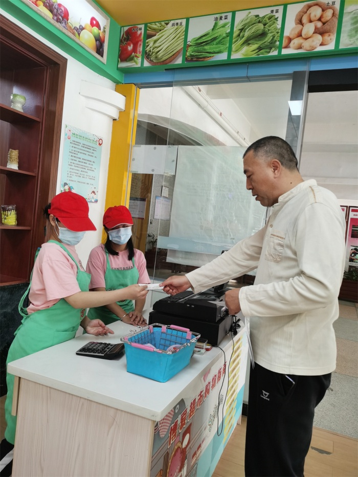 期間還有一些老師前來博愛超市圍觀,順便考驗(yàn)了一下超市的小工作人員們,看著小工作人員們駕輕就熟地完成從“歡迎光臨”的熱情招呼到“謝謝惠顧”的禮貌道別,這一系列流程,老師們無不為孩子的成長(zhǎng)進(jìn)步感到驚喜,紛紛為服務(wù)團(tuán)隊(duì)的業(yè)務(wù)能力與合作精神豎起大拇指。