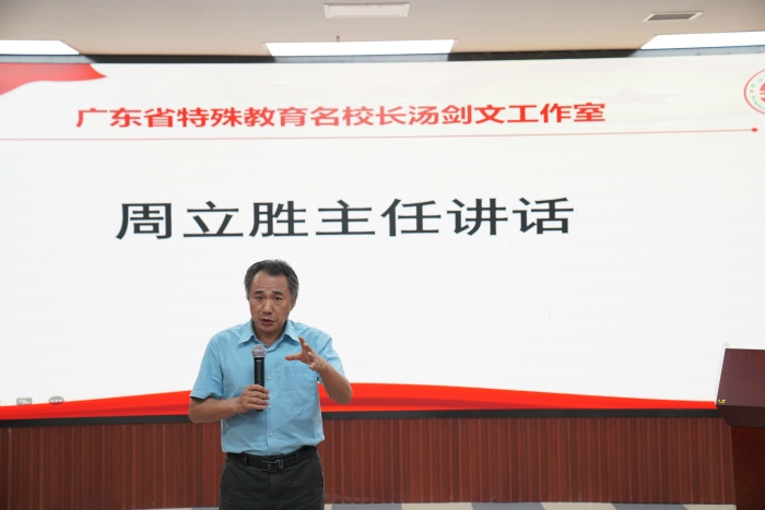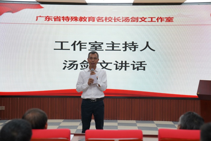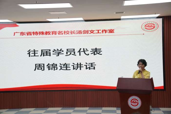 活動(dòng)中,湯劍文名校長工作室第一期學(xué)員、現(xiàn)中山市名校長工作室主持人周錦連也跟與會人員分享了當(dāng)年跟湯校一起學(xué)習(xí)研修的時(shí)光,那是讓她快速成長的一段重要經(jīng)歷,三年學(xué)習(xí)讓她獲益頗豐。而本輪學(xué)員代表陳冠忠校長在講話中表態(tài),非常榮幸加入工作室這個(gè)學(xué)習(xí)共同體,未來的學(xué)習(xí)研修中一定會立足于自身發(fā)展,全面提高個(gè)人的辦學(xué)能力和管理水平。之后工作室理論導(dǎo)師葛新斌教授從結(jié)緣特殊教育、倡導(dǎo)融合教育、中山特教的發(fā)展等方面大力贊揚(yáng)湯劍文校長所作出的貢獻(xiàn),也希望工作室能培養(yǎng)一批又一批的特教骨干校長,為廣東省特殊教育注入不竭力量。