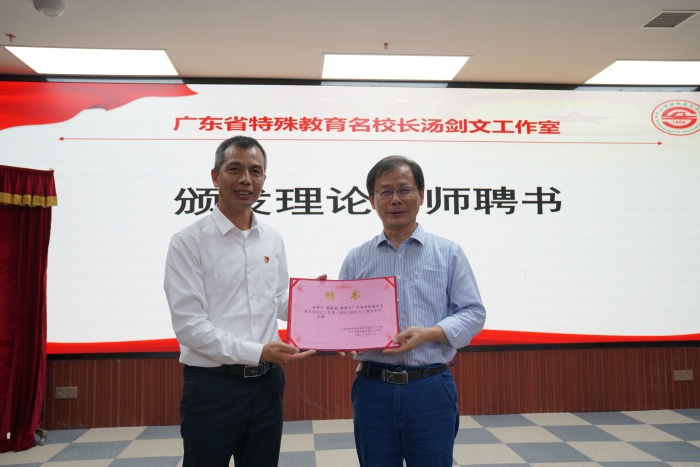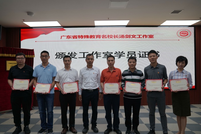 湯劍文工作室已是上一輪(2018-2021年)廣東省5個(gè)特殊教育名校長工作室之一,該工作室銳意創(chuàng)新、成果卓著,在新一輪(2021-2023年)申報(bào)中再次脫穎而出,成功連任,光榮成為本輪廣東省4個(gè)特殊教育名校長工作室之一。該工作室主持人為中山特校黨總支書記、校長湯劍文,理論導(dǎo)師為葛新斌教授,學(xué)員分別是珠海市斗門特校校長鄺永強(qiáng),惠州市惠城區(qū)特校校長陳冠忠,肇慶市廣寧縣特校校長黃朝海,江門市特校副校長李兆,中山特校副校長巫曉丹,中山特校黨總支委員林昌、林開儀、芮露等8人,工作室助理為中山特校趙娜、梁超洋老師。