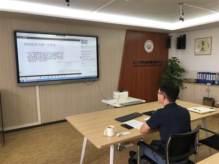 本次培訓(xùn)由中山市特殊教育指導(dǎo)中心常務(wù)副主任林開儀主持,全市中小幼選課教師及中山市對(duì)口支援的惠州博羅、潮州的近400位教師參與。邀請(qǐng)了華東師范大學(xué)教育學(xué)部特殊教育學(xué)系教授、融合教育研究院院長(zhǎng)、博士生導(dǎo)師,中國殘疾人事業(yè)發(fā)展研究會(huì)融合教育專業(yè)委員會(huì)主任鄧猛教授作《從隨班就讀到融合教育:基于“十四五”特殊教育行動(dòng)計(jì)劃的融合教育發(fā)展探索》專題講座。