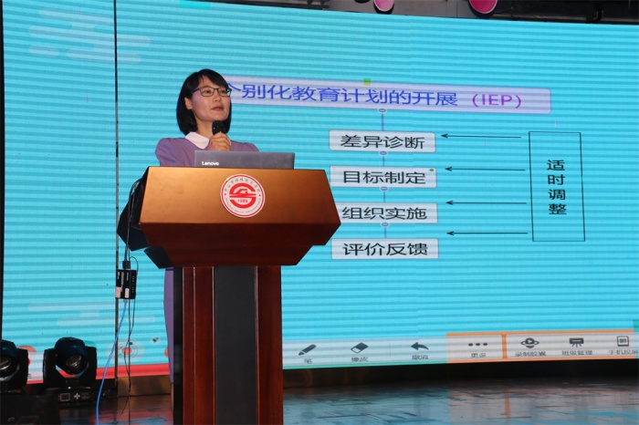 朱建美老師分享了她在IEP工作中的實踐心得。她指出,思想上的轉(zhuǎn)變很重要,要從優(yōu)勢視角出發(fā),而非問題視角,更多關(guān)注學(xué)生的優(yōu)勢和潛能。她從差異診斷、目標(biāo)制訂、組織實施、評價反饋等四個方面進(jìn)行詳細(xì)闡述,并提出了推行導(dǎo)生制、同伴協(xié)助、落實差異教學(xué)等策略,分享了自己在生活適應(yīng)和勞動技能課上運用園藝療法進(jìn)行的新探索。內(nèi)容充實有質(zhì)量,老師們獲益匪淺。