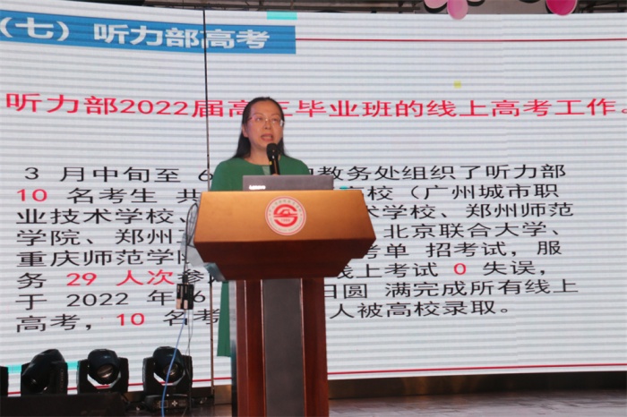 陳云華副校長從校級各項評比、信息技術(shù)2.0、聽力部高考等八個方面回顧了上學(xué)期的主要教學(xué)工作。她表示,在剛剛過去的一個學(xué)期,中山特校全體教師腳踏實地、銳意進(jìn)取,譜寫了踔厲奮發(fā)的輝煌篇章。她闡述了學(xué)校IEP工作的發(fā)展歷程,點出目前IEP工作存在的問題和需進(jìn)一步改進(jìn)的方向。另外,下一步學(xué)校將繼續(xù)夯實教研科研活動,注重研訓(xùn)結(jié)合;完善和規(guī)范教育體系,大力發(fā)展職業(yè)教育;優(yōu)化協(xié)同教學(xué)模式,提升課堂教學(xué)質(zhì)量。她希望老師們從“心”開始,從“細(xì)”著手,探索更多行之有效的教學(xué)方法,以嶄新的工作面貌和務(wù)實的工作態(tài)度,為中山特殊教育事業(yè)揮灑青春和汗水,貢獻(xiàn)智慧和力量。