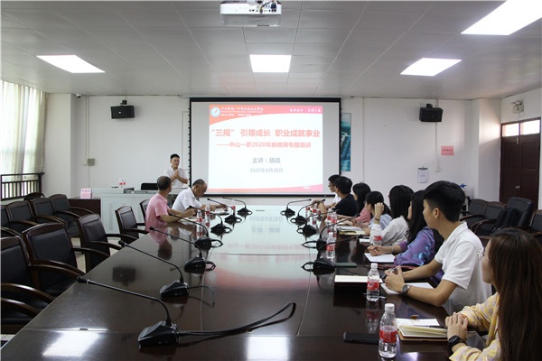 為了幫助2020年新教師盡快轉(zhuǎn)變身份,順利走上工作崗位,8月26日上午,中山一職在學(xué)校二樓會(huì)議室舉行了新教師崗前培訓(xùn)活動(dòng),旨在指導(dǎo)新老師“如何備好課,如何上好課,如何做好一名教師?”龍衛(wèi)平校長(zhǎng)、章利建副校長(zhǎng)、教務(wù)處何彩梅副主任、各學(xué)部部長(zhǎng)、各相關(guān)學(xué)科負(fù)責(zé)人參加了本次會(huì)議,陳定中老師主持會(huì)議。