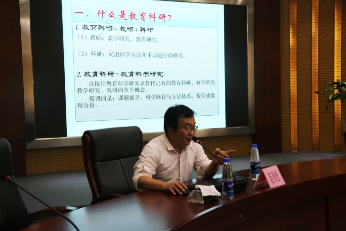 理論源于實(shí)踐,理論指導(dǎo)實(shí)踐。對(duì)理論的深刻把握有利于課題研究綻放創(chuàng)新之花結(jié)出教育科研之碩果。聶勁松以《教育科研及其方法論問題》為主題,他高屋建瓴,從什么是教育科研、為什么要做教育科研、怎樣做教育科研、課題申報(bào)書準(zhǔn)備四個(gè)大的方面展開,引導(dǎo)在座教師在教育科研中要以問題導(dǎo)向?yàn)樵瓌t,與在座教師分析教育科研的內(nèi)涵、教育科研的目的和意義,進(jìn)而梳理出教育科研的問題源泉,明確教育科研啟動(dòng)與實(shí)施的過程,引領(lǐng)大家把握選題角度,研究?jī)r(jià)值表述的準(zhǔn)確性貼切性,理順研究目標(biāo)、研究?jī)?nèi)容以及之間的科學(xué)邏輯關(guān)系。