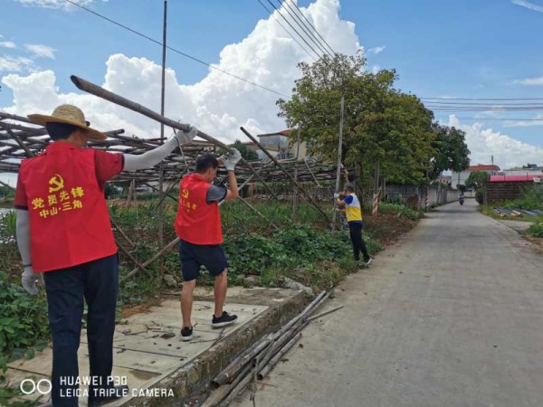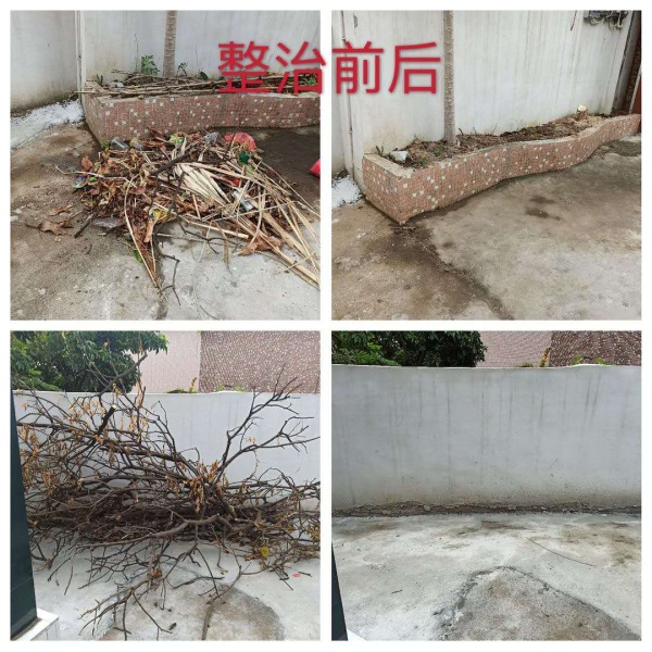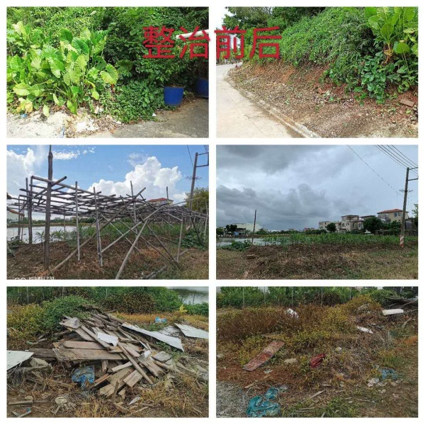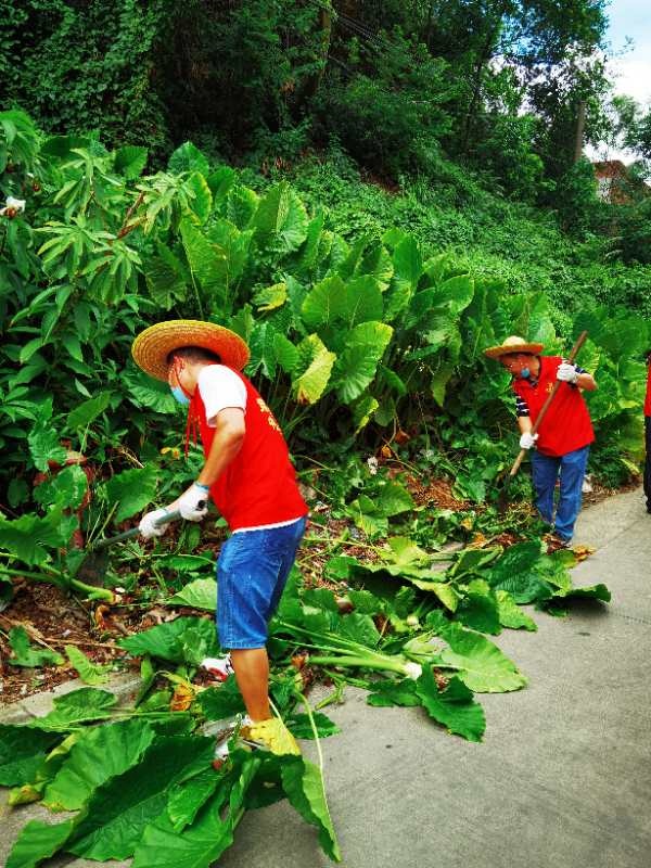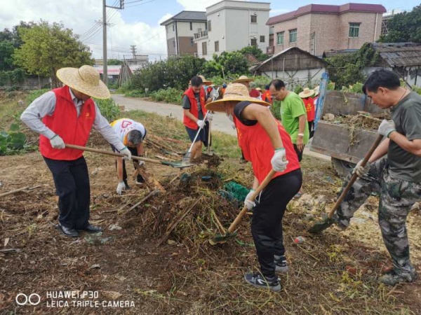 當(dāng)天早上時(shí)而烏云密布,時(shí)而晴天,時(shí)而下起小雨,仿佛為“戰(zhàn)斗”增添了氣氛。8:30分,同志們整裝待發(fā),草帽、手套、手襪、口罩等保護(hù)物品齊上陣;掃把、鐵鏟、鋤頭、鐵耙、砍刀等勞動(dòng)工具火速到位。9:00隨著領(lǐng)導(dǎo)一聲令下,大伙兵分兩路從東南村府出發(fā),奔赴火熱的“勞動(dòng)基地”。其中一支隊(duì)伍負(fù)責(zé)清拆亂建棚舍,另一支隊(duì)伍清理村民房前屋后積存的垃圾雜物。