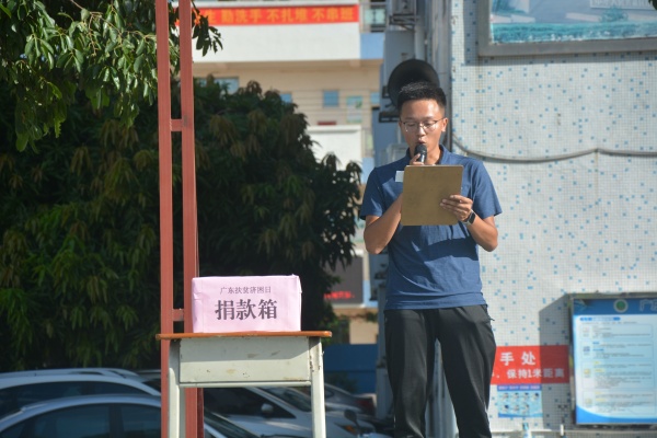 在活動現(xiàn)場,廖曉武老師宣讀了活動倡議書,校長梁炳華等學(xué)校行政做出表率,帶頭募捐,教職員工積極響應(yīng)。而滿腔熱忱的同學(xué)們也踴躍慷慨解囊,同伸援手。各班班長排著整齊的隊(duì)伍,踴躍捐款,伸出愛心之手,匯聚愛的力量!