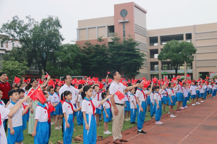 升旗儀式結(jié)束后,師生們揮舞著手中的五星紅旗,共同合唱隊(duì)歌,表達(dá)對(duì)祖國(guó)的熱愛(ài),這一刻,全體師生與祖國(guó)的心緊緊連在一起,都為身為中國(guó)人而自豪,共同祝福祖國(guó)母親生日快樂(lè),祝愿祖國(guó)越來(lái)越好。當(dāng)天,師生們還積極與國(guó)旗合影,為祖國(guó)喝彩,小小的國(guó)旗,揮灑著他們內(nèi)心的小小愛(ài)國(guó)情,民族自豪感在每一個(gè)學(xué)生的心中生根發(fā)芽,也為今后學(xué)生的健康成長(zhǎng)奠定了基礎(chǔ)。