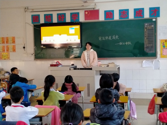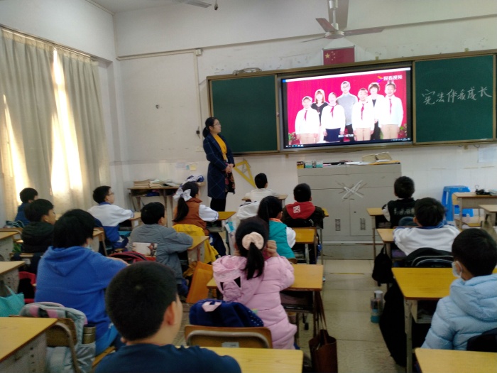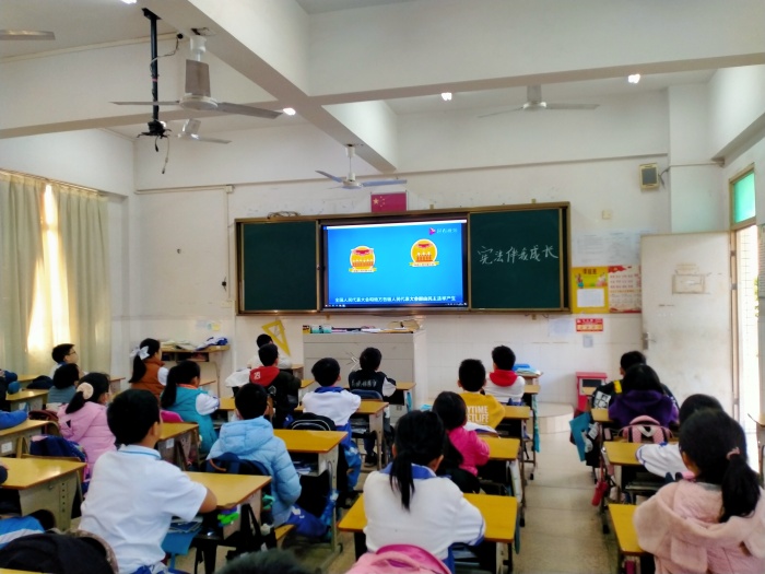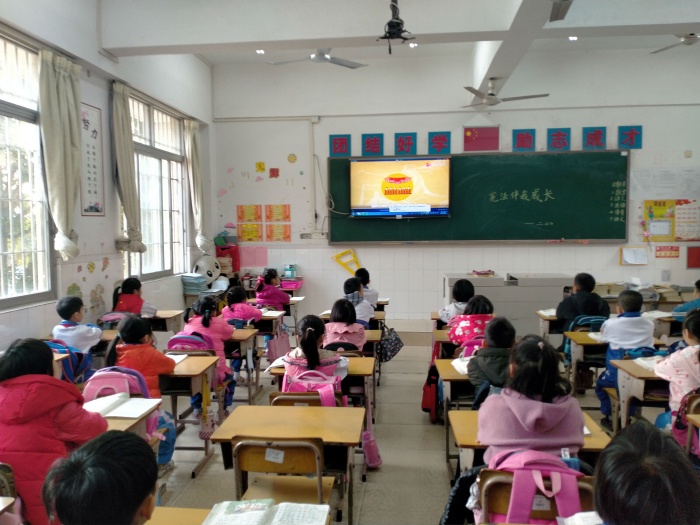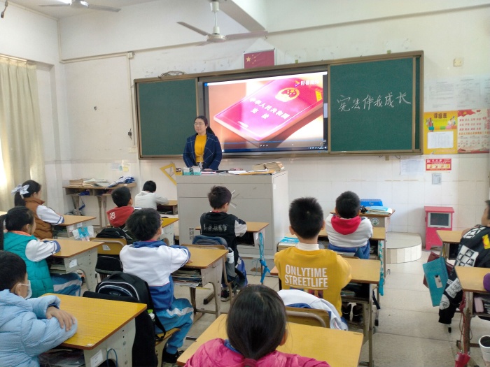 12.4國(guó)家憲法日, 光明小學(xué)開展“晨讀憲法“和“憲法伴我成長(zhǎng)”主題班會(huì)。班會(huì)上,班主任利用自己精心制作的課件,生動(dòng)有趣的動(dòng)畫,向同學(xué)們進(jìn)行了形象的講解:2014年11月1日第十二屆全國(guó)人民代表大會(huì)常務(wù)委員會(huì)第十一次會(huì)議通過決議,將12月4日設(shè)立為國(guó)家憲法日。憲法是國(guó)家的根本大法,它規(guī)定了國(guó)家的根本制度和根本任務(wù),是人們行為的基本法律準(zhǔn)則。班主任們用通俗易懂的話語(yǔ),向?qū)W生介紹學(xué)習(xí)憲法的重要意義。