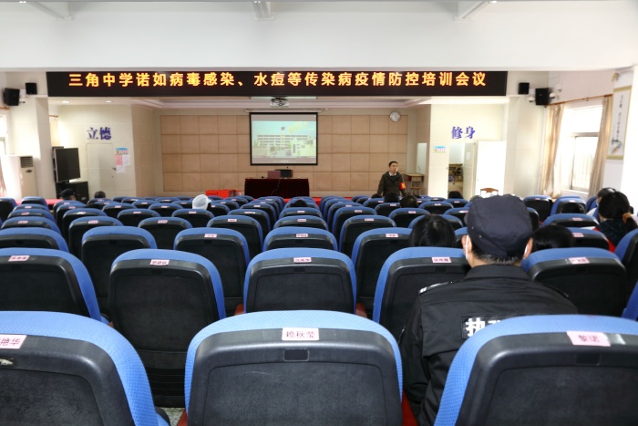 為了落實預(yù)防傳染病宣傳教育,提高冬季傳染病疫情防控的重視和執(zhí)行力,規(guī)范疫情防控工作,12月25日下午,三角中學(xué)在學(xué)校報告廳召開秋冬季傳染病疫情防控培訓(xùn)會議,全校學(xué)生以及教職員工參加了會議。