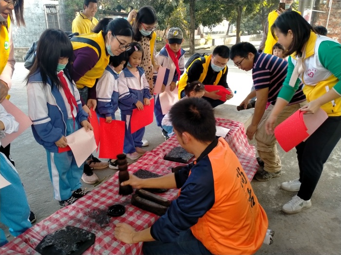 最后,親子們?cè)谥驹刚叩闹笇?dǎo)下,體驗(yàn)國(guó)家級(jí)非遺木板年畫(huà)的制作,并把親手制作的木板年畫(huà)連同祝福送給附近的爺爺奶奶,表示感恩老一輩為三角建設(shè)作出的貢獻(xiàn)。