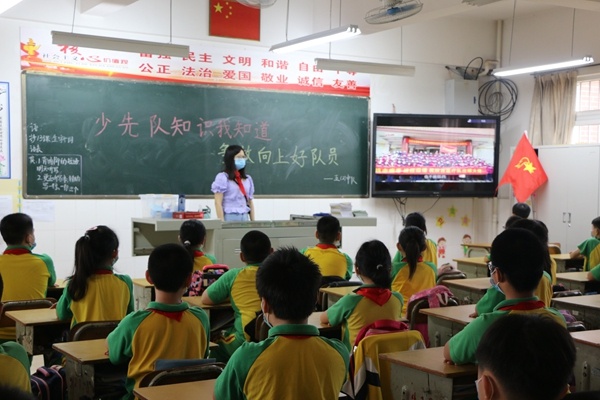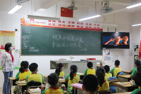 主題隊(duì)會(huì)通過(guò)線(xiàn)上、線(xiàn)下兩種方式進(jìn)行。一到三年級(jí)的學(xué)生,繼續(xù)由各班中隊(duì)輔導(dǎo)員通過(guò)釘釘直播的方式,學(xué)習(xí)《光榮的少先隊(duì)》。學(xué)習(xí)視頻主要從“紅領(lǐng)巾小劇場(chǎng)、我的成長(zhǎng)史、我的先鋒日記、爭(zhēng)做新時(shí)代好隊(duì)員、兒童電影賞析和輔導(dǎo)員考考你”這六個(gè)方面講述了隊(duì)章和少先隊(duì)基本知識(shí)。通過(guò)學(xué)習(xí),預(yù)備隊(duì)員們對(duì)少先隊(duì)充滿(mǎn)了向往,憧憬著能成為一名光榮的少先隊(duì)員。而四到六年級(jí)的學(xué)生,在中隊(duì)輔導(dǎo)員的引領(lǐng)下,在教室里回顧學(xué)習(xí)《少先隊(duì)知識(shí)知多少》,深入學(xué)習(xí)少先隊(duì)的光榮歷史,詳細(xì)回顧了少先隊(duì)的全稱(chēng)、歷史、隊(duì)徽、隊(duì)旗、標(biāo)志、隊(duì)禮、作風(fēng)等,輔導(dǎo)員還鼓勵(lì)少先隊(duì)員們要“從小學(xué)先鋒、長(zhǎng)大做先鋒,努力成長(zhǎng)為能夠擔(dān)當(dāng)民族復(fù)興大任的時(shí)代新人”。