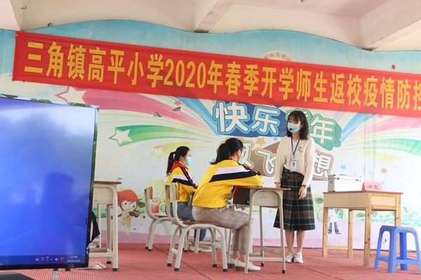 為科學(xué)、規(guī)范、效、有序地開(kāi)展新冠肺炎疫情防控工作,切實(shí)保障師生身體健康和生命安全,維護(hù)學(xué)校正常教育教學(xué)秩序,強(qiáng)化師生的疫情安全和自我防范意識(shí),4月26日,高平小學(xué)舉行開(kāi)學(xué)疫情防控演練,全體老師參加,三角鎮(zhèn)黨委委員李銘霞、白升榮到現(xiàn)場(chǎng)指導(dǎo),到現(xiàn)場(chǎng)的還有鎮(zhèn)文體教育局、衛(wèi)計(jì)局、綜治維穩(wěn)局、人社局、疾病控制中心、教育事務(wù)指導(dǎo)中心、高平村相關(guān)領(lǐng)導(dǎo)、三角鎮(zhèn)各小學(xué)校長(zhǎng)以及家長(zhǎng)委員會(huì)的委員到場(chǎng)觀摩。