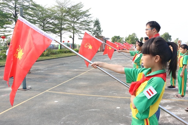 迎著朝陽,全體師生共同進(jìn)行了莊嚴(yán)的升國(guó)旗儀式,本次微儀式由此拉開了序幕。升旗儀式后,少年隊(duì)員們佩戴著鮮艷的紅領(lǐng)巾,集結(jié)在星星火炬旗幟下,伴著激昂的鼓樂,莊嚴(yán)地敬隊(duì)禮,齊聲唱響《我們是共產(chǎn)主義接班人》。緊接著,由高平小學(xué)少先隊(duì)大隊(duì)輔導(dǎo)員曾麗娟老師帶領(lǐng)全體少先隊(duì)員重溫入隊(duì)誓詞。少先隊(duì)員們高舉右拳,在國(guó)旗和隊(duì)旗下莊嚴(yán)地宣誓。其次,曾老師進(jìn)行了隊(duì)旗下講話,講述了少先隊(duì)的歷史,號(hào)召隊(duì)員們要珍惜來之不易的幸福生活,從小事做起,為紅領(lǐng)巾添光彩。