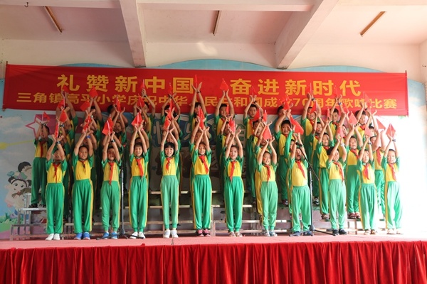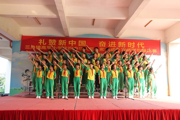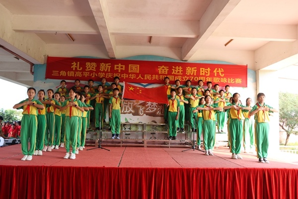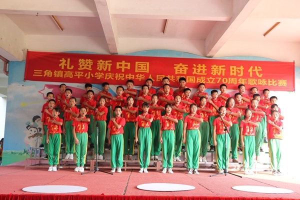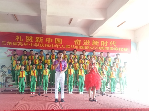 為了慶祝中華人民共和國成立70周年,引導(dǎo)學(xué)生唱響愛黨愛國愛社會(huì)主義的時(shí)代主旋律,營造禮贊新中國、奮進(jìn)新時(shí)代的濃厚氛圍,引導(dǎo)激勵(lì)廣大學(xué)生做擔(dān)當(dāng)民族復(fù)興大任的時(shí)代新人、做德智體美勞全面發(fā)展的社會(huì)主義建設(shè)者和接班人。2019年9月29日下午,三角鎮(zhèn)高平小學(xué)開展了慶祝中華人民共和國成立70周年歌詠比賽。