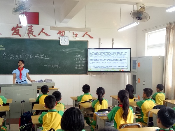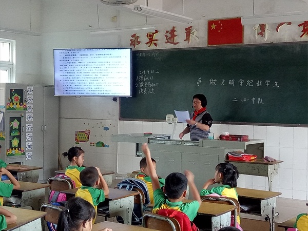 此次隊(duì)會(huì)課由學(xué)校大隊(duì)輔導(dǎo)員曾麗娟老師統(tǒng)一指導(dǎo),各班主任精心部署。在隊(duì)會(huì)課上全體班主任組織學(xué)生們共同學(xué)習(xí)了《高平小學(xué)文明班評(píng)比條例》,共十大部分內(nèi)容,分別是升旗紀(jì)律、課堂紀(jì)律、課間常規(guī)管理、課間操、眼保健操、學(xué)生儀表和個(gè)人衛(wèi)生、衛(wèi)生(教室衛(wèi)生、公區(qū)衛(wèi)生)、自行車(chē)、飯?zhí)霉芾怼⑽缢?。班主任們通過(guò)幽默有趣的方式深入淺出地為學(xué)生們?cè)敿?xì)地解讀每一項(xiàng)內(nèi)容,積極引導(dǎo)學(xué)生們進(jìn)行自我檢查,自我反省。不僅如此,班主任們還針對(duì)開(kāi)學(xué)以來(lái)學(xué)生們?cè)趯W(xué)校的行為表現(xiàn)進(jìn)行點(diǎn)評(píng)總結(jié),給學(xué)生們創(chuàng)建一個(gè)文明有序的班集體提出了更高的要求和更具體的努力方向。