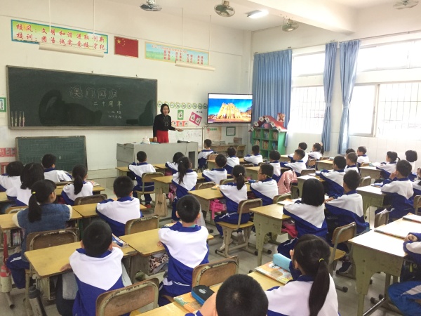 今年12月20日是澳門回歸祖國20周年紀念日。為了增強廣大師生的民族自豪感,弘揚愛國主義精神,12月16日,三角鎮(zhèn)三角小學開展“慶祝澳門回歸二十周年”主題班會。