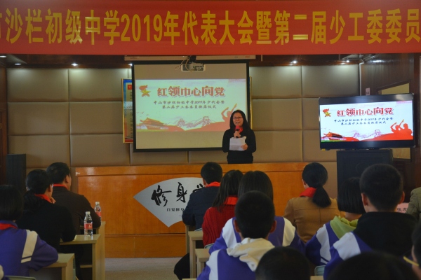 少先隊(duì)中山市沙欄初級(jí)中學(xué)2019年代表大會(huì)于12月27日召開(kāi),三角鎮(zhèn)團(tuán)委副書(shū)記、少工委總輔導(dǎo)員周瓊珠,沙欄初級(jí)中學(xué)校長(zhǎng)梁炳華及學(xué)校各中隊(duì)少先隊(duì)員代表、輔導(dǎo)員代表等出席了會(huì)議。