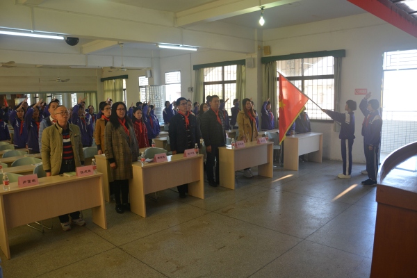會(huì)議在雄壯的國(guó)歌聲中拉開(kāi)帷幕,奏唱國(guó)歌后,出中國(guó)少年先鋒隊(duì)隊(duì)旗,奏唱隊(duì)歌。三角鎮(zhèn)團(tuán)委副書(shū)記周瓊珠為大會(huì)致辭,她表示學(xué)校少工委要大膽探索新形勢(shì)下少先隊(duì)工作,適應(yīng)社會(huì)發(fā)展需求的內(nèi)容和模式,重視和加強(qiáng)少先隊(duì)輔導(dǎo)員、少先隊(duì)工作者隊(duì)伍建設(shè),不斷優(yōu)化少先隊(duì)輔導(dǎo)員工作環(huán)境。