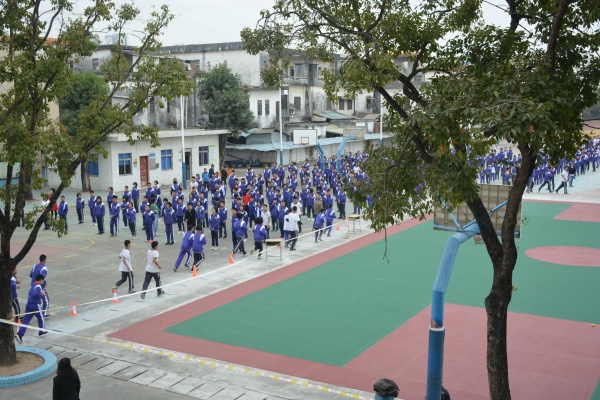 下課時(shí)急促的警報(bào)聲突然響起,該校三個(gè)年級(jí)的學(xué)生迅速走出教室,排好隊(duì)伍,按照指定的路線從教學(xué)樓內(nèi)撤離,前往學(xué)校操場(chǎng)集合。學(xué)生們的行動(dòng)規(guī)范迅速,整齊劃一。各班學(xué)生到達(dá)集中地點(diǎn)后,以班為單位集隊(duì),各班應(yīng)立即清點(diǎn)人數(shù),并向總指揮報(bào)告。整個(gè)疏散的過(guò)程只用了2分鐘,整個(gè)疏散井然有序,忙而不亂,取得了圓滿的成功。