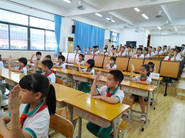 6月18日下午,三角鎮(zhèn)沙欄小學(xué)隆重舉行“迎接少代會(huì) 爭做好隊(duì)員”第三屆少代會(huì)。三角鎮(zhèn)沙欄小學(xué)校長吳博事、副校長梁雪文、沙欄小學(xué)各行政、中隊(duì)輔導(dǎo)員及一至六年級(jí)的少先隊(duì)員代表共89人參加了本次少代會(huì)。