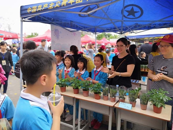 活動(dòng)準(zhǔn)備開(kāi)始時(shí),每個(gè)班級(jí)的家長(zhǎng)義工都爭(zhēng)相奔往活動(dòng)場(chǎng)地,在各自的陣地上搭建起一個(gè)個(gè)各具特色的簡(jiǎn)易店鋪。24個(gè)愛(ài)心義賣(mài)攤位各出其招,裝點(diǎn)各具特色。其中義賣(mài)物品也很有創(chuàng)意,有自制精品、自制DIY手工作品、自制美食、現(xiàn)場(chǎng)演奏樂(lè)器、書(shū)畫(huà)作品等。還有創(chuàng)意十足的店名和有奪人眼球的廣告板,讓人不禁眼花繚亂。每個(gè)班級(jí)的小售貨員們使出渾身解數(shù),格外賣(mài)力地推銷(xiāo),為了吸引更多的顧客,有的高舉廣告牌大聲吆喝,有的在攤位上使出渾身解數(shù)盡情表演,有的揮舞精心制作的展板惹人注意,有的如同賣(mài)貨郎一般四處兜售。一元,兩元,五元,五十元……雖然已經(jīng)口干舌燥,但看著越來(lái)越多的愛(ài)心款,售貨員們顧不上休息,盡力用最誘人的語(yǔ)言打動(dòng)每個(gè)顧客。沸沸揚(yáng)揚(yáng)的吆喝聲此起彼伏,滿(mǎn)眼看到的都是一張張燦爛的笑臉,人群中,有可愛(ài)的同學(xué)們,有熱情的家長(zhǎng)們,也有可親可敬的老師們,每個(gè)人的眼里都帶著濃濃的快樂(lè)。