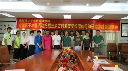 2019年6月17日下午,三鄉(xiāng)鎮(zhèn)白石環(huán)小學(xué)的市立項(xiàng)課題《以親子水墨活動挖掘三鄉(xiāng)古村落美學(xué)價(jià)值的行動研究》迎來了結(jié)題鑒定會。蒞臨指導(dǎo)的專家有中山市教體局教研室美術(shù)教研員沈文老師,中山市教育學(xué)會美術(shù)書法教學(xué)專業(yè)委員會劉堅(jiān)副會長,中山市美術(shù)家協(xié)會陳永生副主席等。學(xué)校行政、課題組成員和水墨家委會代表共近二十人參加了本次的結(jié)題會。