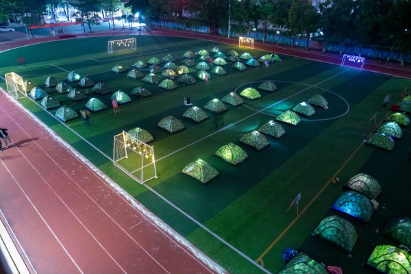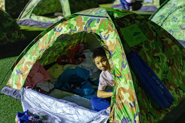 帳篷自己搭?;锇樽约簬停щy自己解決。搭帳篷太不容易了,一定要兩個人合作。同學(xué)們和伙伴一起摸索把帳篷搭起來,太開心了!在自己窩里掛上閃爍的燈飾,好美。