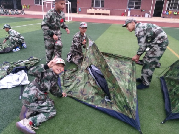 5:50AM,睡夢中的同學(xué)們被音樂喚醒啦!同學(xué)們摸黑起床更衣、收拾行李、收拆帳篷、洗漱整理,不到30分鐘全部搞定!天還蒙蒙亮?xí)r教官帶領(lǐng)班級整隊跑步三圈。6:35AM同學(xué)們已整整齊齊在升旗臺前站立。6:39AM國旗伴隨太陽一起在校園升旗。別提大家有多激動了。你聽,國歌唱得更嘹亮!你看,隊禮敬得更有力!你用心感受,每一個同學(xué)眼晴都更閃亮!在國旗下,畢業(yè)班的同學(xué)們莊嚴(yán)宣誓:牢記“向下扎根向上攀登”森林娃成長要求,像樹一樣穩(wěn)穩(wěn)的生長,做一個永遠(yuǎn)熱愛祖國的中國人!