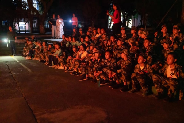 夜晚來臨,篝火燃起來,歌聲響起來,舞蹈飄起來,紅紅的篝火映得每一個臉龐通紅。最刺激的的班級拉歌!大家互相挑戰(zhàn),比試班級氣勢,你唱隊歌、我唱軍歌熱鬧非凡;最熱烈的是跳兔子舞和DISCO。同學(xué)們圍成一個首尾相連的大圓圈,不停地跳呀喊呀,老師們也像孩子一樣加入到我們的隊伍里。只是一個半小時的時間太短啦!