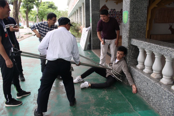 4月3日下午4時,防恐演戲正式開始,學生向日常一樣,進行大課間,校園內一聲警報聲,各班學生迅速組成隊伍,有序地逃向安全地點,校園內安全防線迅速形成,快速將由老師扮演的歹徒制服,全校師生快速到位,安全撤離。