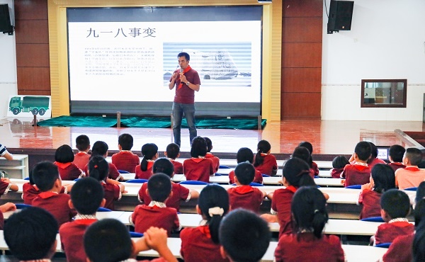 9月18日上午,新圩小學(xué)少先隊大隊部組織四年級大隊全體隊員在階梯教室進(jìn)行紀(jì)念“九一八事變”大隊活動。