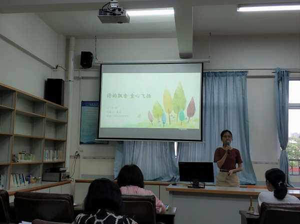 在三四年級匯報中,為了更好的讓學生學好漢字,做有根的中國人,三(1)班建設一個與學校特色一脈相承的“書法”特色班級——翰池小荷,志在讓學生志于道,據(jù)于德,依于仁,游于藝。而在同一年級的三(3)班為營造一個詩香飄逸的文化氛圍,讓學生感受中華傳統(tǒng)文化的博大精深,特此以“詩歌”為內容的特色班級,并舉辦了獨具特色的第一屆“詩全詩美”杯硬筆書法比賽以及第一屆“詩全詩美”杯詩歌朗誦比賽,依此讓學生徜徉在文學殿堂里。在四年級中四(1)班則以書籍為構想,從七彩閱讀、七彩小組、讀書簽千百遍等活動中,向學生滲透閱讀的樂趣,讓學生在特色活動中愛上閱讀。