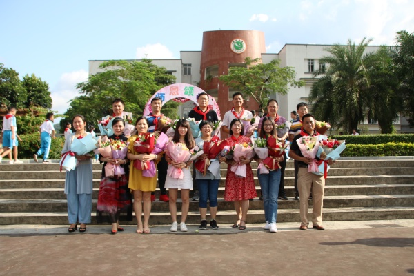 最后,全體老師走到“師德門”前,排成兩列,由陳校長(zhǎng)、王校長(zhǎng)帶領(lǐng)一起穿越“敬師恩?頌師德”那扇師德門,家長(zhǎng)代表和學(xué)生代表給各位老師送上清香嬌艷的鮮花。穿越了“師德門”,成為“高尚人”,此時(shí)此刻老師們的心情是激動(dòng)的,他們手棒鮮花,莊嚴(yán)宣誓:“不忘初心,牢記使命,我們都是光榮的人民教師!”自豪的聲音在校園回蕩。