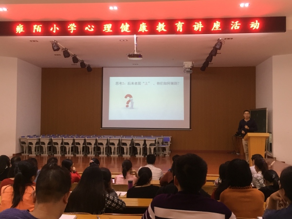 為了深入貫徹《國家中長期教育改革和發(fā)展規(guī)劃綱要》和教育部《中小學(xué)心理健康教育指導(dǎo)綱要》精神,提升教師利用心理學(xué)知識(shí)教育學(xué)生的能力,4月15日下午,雍陌小學(xué)邀請(qǐng)紀(jì)念中學(xué)的張均華老師給全體教師做以《后來者,如何居上》為主題的心理健康教育講座。