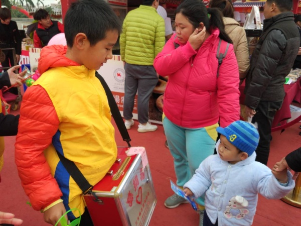 小義工們抓準機會,一看見有親子一起逛街的,迅速走到叔叔阿姨面前,游說家長們奉獻愛心,給孩子做一個好榜樣。小義工朋友們面帶微笑,帶著愛心,不斷地去分享,不斷地去傳播,影響著身邊每一位來美食節(jié)的家庭。