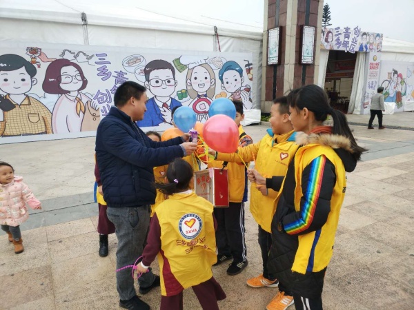 十二月末的冬日,寒風(fēng)襲來,寒流籠罩著整個大地,可近日,三鄉(xiāng)這座小鎮(zhèn)卻沸騰熱鬧起來,被濃濃的愛心暖流包圍著,這源于三鄉(xiāng)文化廣場開展的第十一屆旅游美食文化節(jié)活動中,那一個個無私奉獻的最美身影——親子義工。12月30日上午,雍陌小學(xué)二十二對親子義工參加了鎮(zhèn)團委聯(lián)合鎮(zhèn)志愿者協(xié)會舉辦的大型慈善義賣募捐活動。