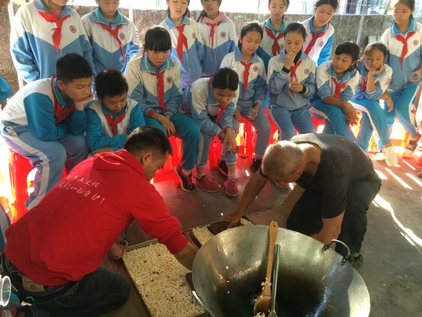 根據(jù)中山市少先隊(duì)特色社團(tuán)隊(duì)伍建設(shè)指導(dǎo)意見,為進(jìn)一步推動(dòng)學(xué)校少先隊(duì)特色社團(tuán)隊(duì)伍的發(fā)展,了解中華大地中的優(yōu)秀傳統(tǒng)文化,加強(qiáng)少年兒童綜合素質(zhì)培養(yǎng)。經(jīng)向?qū)W校、鎮(zhèn)少工委、鎮(zhèn)文體教育局申報(bào)、審批,雍陌小學(xué)少先隊(duì)特色社團(tuán)于2018年12月21日下午,到三鄉(xiāng)鎮(zhèn)前隴村尚古傳統(tǒng)文化傳承基地進(jìn)行了半天的鄉(xiāng)土研學(xué)活動(dòng)。課程有走訪古村、傳統(tǒng)三鄉(xiāng)茶果制作、瀨粉制作、木板刻印年畫和通米制作。