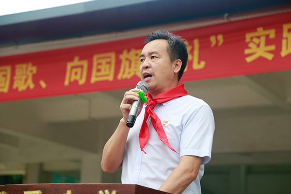 莊嚴(yán)的升旗儀式后,由學(xué)校黨支部書記張政校長對大家進行愛國主義教育,以及送上新學(xué)期寄語?!皣俏业膰?,家是我的家,有了強的國,才有富的家!我愛我的國!我們給孩子傳遞的是這份深深的愛國情!”
