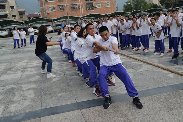 此次比賽在周麗清級長和班主任的共同策劃下開展的,共有 10 支隊伍參加,每班選出10個男生和10個女生組成,參賽人員個個精神飽滿,意氣風發(fā)。比賽開始前,場內(nèi)裁判做了詳細的規(guī)則介紹。比賽尚未開始,雙方隊員已經(jīng)進入“戰(zhàn)斗狀態(tài)”,雙手像一把把鐵鉗子似的,緊握著麻繩,雙腳用力著地,身體向后微傾,參賽同學齊心協(xié)力凝成了一股繩!隨著一聲哨響,比賽拉開了帷幕,比賽雙方奮力拉著繩子,指揮員認真的指揮著每一個動作,隊員們高喊著“一二一二”,比賽氣氛十分濃重。站在賽場外的啦啦隊,也不停的呼喊著“加油,加油”,每一個人都恨不得自己也成為其中的一員。