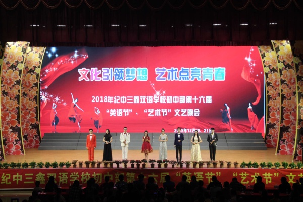 12月20日、21日晚,中山市紀(jì)中三鑫雙語(yǔ)學(xué)校體育館掌聲、歡呼聲連綿不斷,經(jīng)久不息。在萬(wàn)眾期待中,三鑫初中部第十六屆“英語(yǔ)節(jié)”、“藝術(shù)節(jié)”文藝晚會(huì)在這里精彩上演。本屆晚會(huì)主題是 “文化引領(lǐng)夢(mèng)想,藝術(shù)點(diǎn)亮青春”,來(lái)自初中部三個(gè)年級(jí)的師生精心籌備的一場(chǎng)視覺盛宴持續(xù)兩晚在這里上演,在元旦來(lái)臨之際,也用這道精彩的“文藝大餐”與大家共同迎接新一年的到來(lái)。