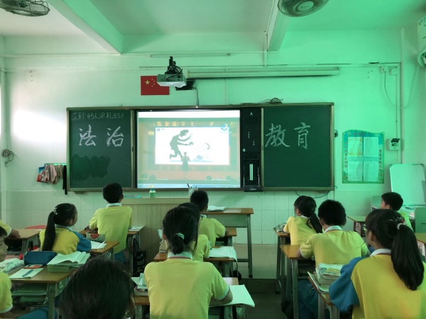 這次班會(huì)課,先是由各班主任講解“未成年人應(yīng)該如何預(yù)防各種犯罪并學(xué)會(huì)保護(hù)自己”的相關(guān)知識(shí),然后組織觀看由中山市人民檢察院、中山市第一市區(qū)人民檢察院、中山市第二市區(qū)人民檢察院和中山市教育和體育局共同主辦的“全市中小學(xué)生法治教育主題班會(huì)直播活動(dòng)”,利用屏幕和投影實(shí)時(shí)收看。