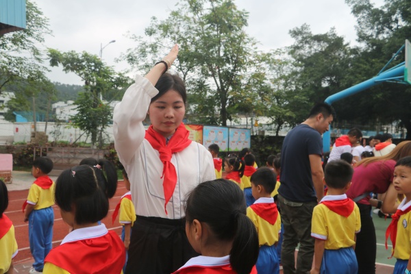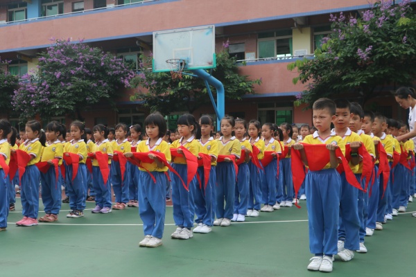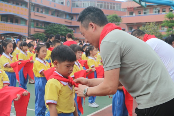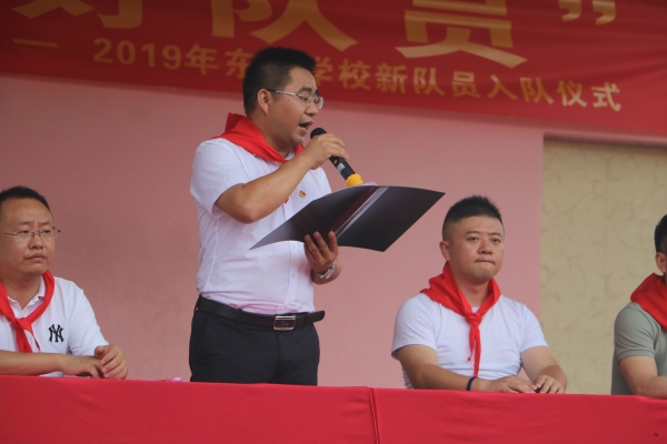 學校黨支部書記、徐文校長在發(fā)言中,深情地說道:“加入少先隊組織,成為一名少先隊員,是個體成長的一個重要標志,是人生進步的第一步。在這個光榮的組織里,你才可以逐漸成長為一個成熟的社會人。祝賀你們到達了人生進步成長的起點,并跨出了重要的一步。愿你們諾行誓言,好好學習,好好鍛煉,敢于超越,學會合作,勇于逐夢。多為他人著想,多為集體著想,在少先隊組織中歷練,為胸前鮮艷的紅領巾增添光彩,為我們學校增添光彩,為你們的家庭增添光彩,為我們偉大的祖國增添光彩”。