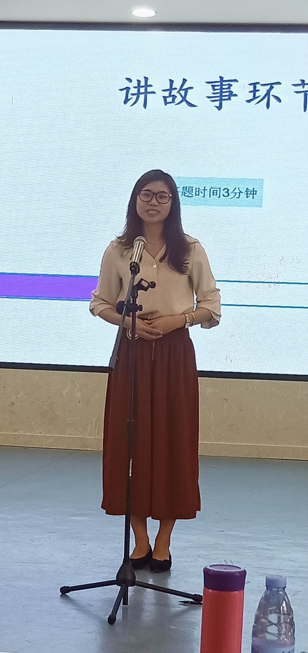 初賽階段,陳老師以淵博的專業(yè)知識(shí),扎實(shí)的基本功,在教學(xué)評(píng)價(jià)活動(dòng)環(huán)節(jié)表現(xiàn)突出;同時(shí),憑借流利地道的口語表達(dá),惟妙惟肖的語言講述Snow White的故事,引來在場(chǎng)觀眾的陣陣掌聲,以絕對(duì)的優(yōu)勢(shì)進(jìn)入決賽。