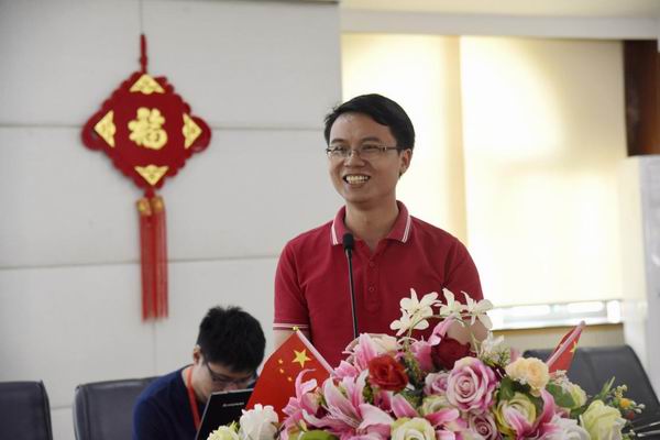 順德華僑中學(xué)黨總支書(shū)記吳劍平校長(zhǎng)用英語(yǔ)向大家致歡迎辭,對(duì)工作室學(xué)員、成員提出了三點(diǎn)希望:明確目標(biāo)、團(tuán)結(jié)一心;把握機(jī)遇、加強(qiáng)學(xué)研;成果豐碩、示范引領(lǐng)。