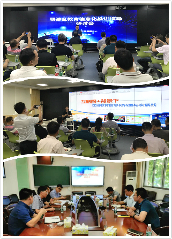 9月21日下午,上海閔行區(qū)教育局教育信息網(wǎng)絡(luò)中心康永平副主任在三樓云錄播室為順德區(qū)教育信息化業(yè)務(wù)研究和指導(dǎo)工作委員會骨干成員(區(qū)教育發(fā)展中心相關(guān)人員、各鎮(zhèn)電教專干及骨干教師)作了《互聯(lián)網(wǎng)+背景下區(qū)域教育信息化轉(zhuǎn)型與發(fā)展實踐》的專家報告,介紹了上海閔行區(qū)通過統(tǒng)籌規(guī)劃做好頂層設(shè)計,重點推進學(xué)生電子成長檔案、教育精細(xì)化管理、教育數(shù)據(jù)分析與應(yīng)用、數(shù)字化學(xué)習(xí)(電子書包)、數(shù)字化校園和教師專業(yè)發(fā)展數(shù)字化支持系統(tǒng)等系統(tǒng)平臺不斷收集和匯聚各相關(guān)部門(科室)的業(yè)務(wù)數(shù)據(jù),形成學(xué)生畫像、教師畫像,建成區(qū)域教育大數(shù)據(jù)中心,以數(shù)為據(jù),用教育大數(shù)據(jù)進行區(qū)域教育治理的探索與實踐經(jīng)驗,本次研討會對我區(qū)即將開展的教育大數(shù)據(jù)建設(shè)進行了專業(yè)的指導(dǎo)并提出了很多有建設(shè)性的“金點子”,與會者紛紛表示受到了很大的啟發(fā),收獲良多,希望以后有更多的交流學(xué)習(xí)機會。