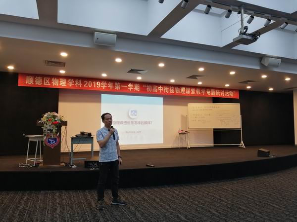 9月18日,順德區(qū)物理學科“初高中銜接物理課堂教學專題研討活動”在廣東順德德勝學校順利開展,參加活動的人員有佛山市教研室物理教研員朱建平教授、順德區(qū)教育發(fā)展中心教研室任富華副主任、100多位初高中物理教師?;顒佑身樀聟^(qū)物理教研員周璐老師主持。