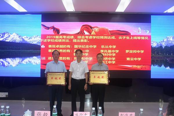 王濤副主任為獲得2019年高考進步獎的學校頒獎