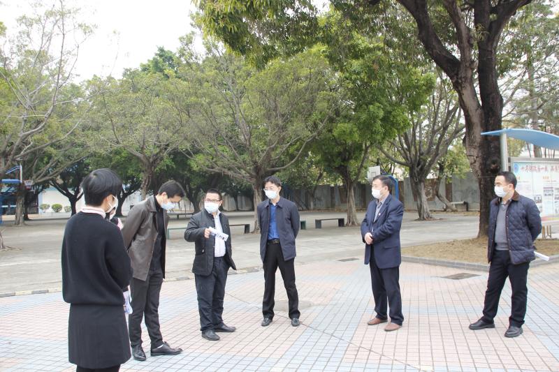 2020年2月11日上午,在新型冠狀病毒感染的肺炎疫情嚴峻形勢下,順德區(qū)政府蔡偉副區(qū)長、區(qū)教育局溫聯(lián)洲副局長蒞臨羅定邦中學,督導(dǎo)檢查我校疫情防控、線上教學、開學準備等工作安排,全體學校行政陪同。