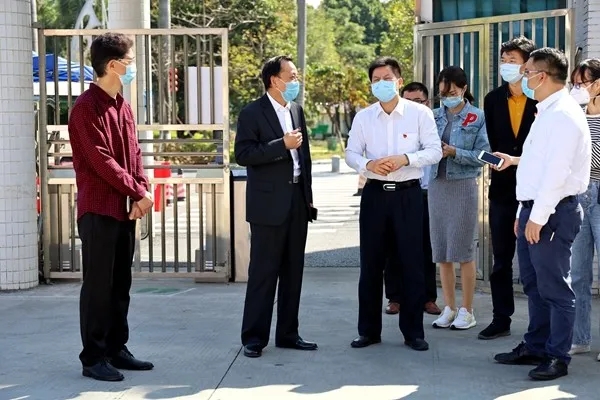 區(qū)長彭聰恩(左起三)到江義中學(xué)指導(dǎo)疫情防控工作